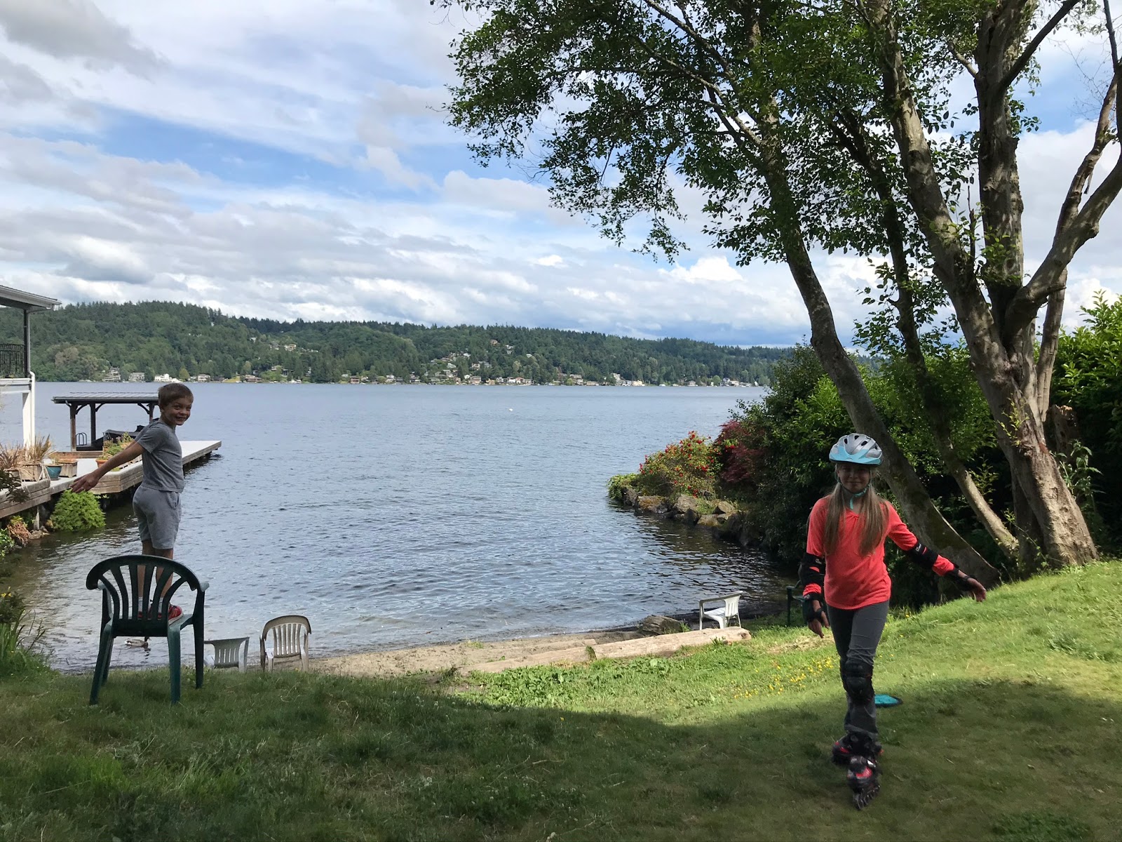 Tuesday: Finished final edits to our Welcome Future Scots video and our Caen Laida (end of the year) Assembly and uploaded to Shorecrest YouTube channel… CHECK!!!.... Kids visit Nana’s and play in the camper… more rollerblading with Charlotte on the trail - Kenmore this time… boys rode bikes…